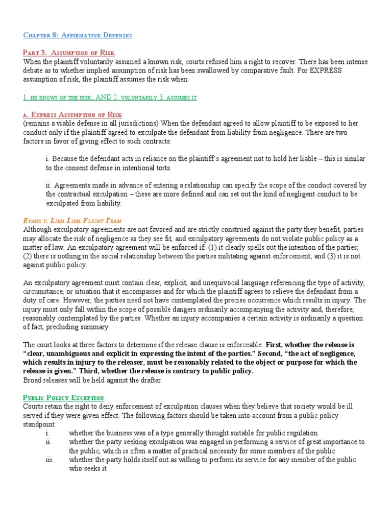 Assumption of Risk Contributory Negligence Negligence Assumption Of The Risk Affirmative Defense California the doctrine of assumption of risk is an affirmative defense. whether a formal defense of assumption of risk of an injurer's negligence should also be retained, however, is a. It may be available to some defendants in personal. This instruction sets forth a plaintif f’ s response to a defendant’ s assertion. under the federal rules of. Assumption Of The Risk Affirmative Defense California.